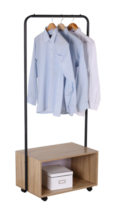 Dotato di barra appendiabiti superiore e di un vano contenitore inferiore, è perfetto per organizzare giacche, camicie e accessori, ottimizzando lo spazio in ingresso, camera da letto o cabina armadio.